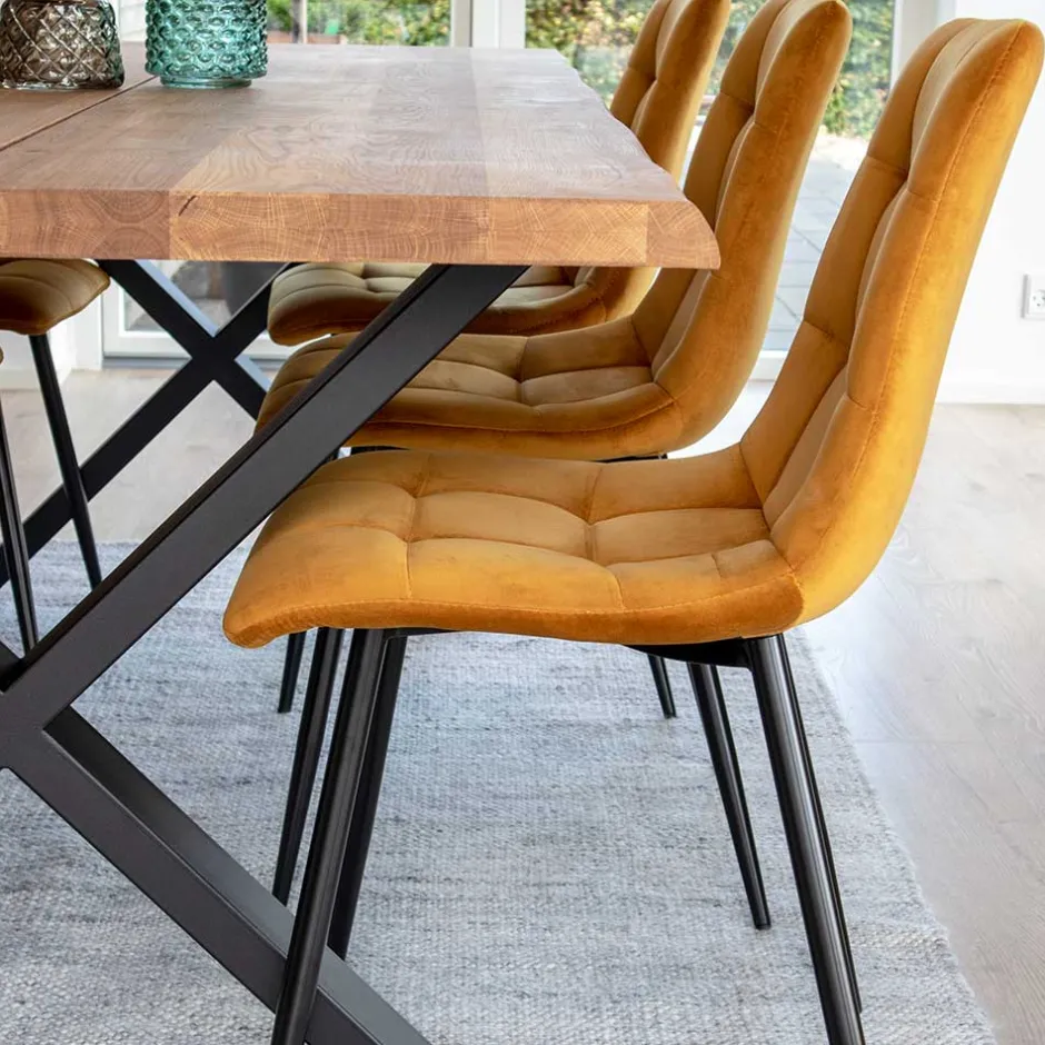 - Exzellente Esszimmergruppe in Ockergelb, Eichefarben und Schwarz