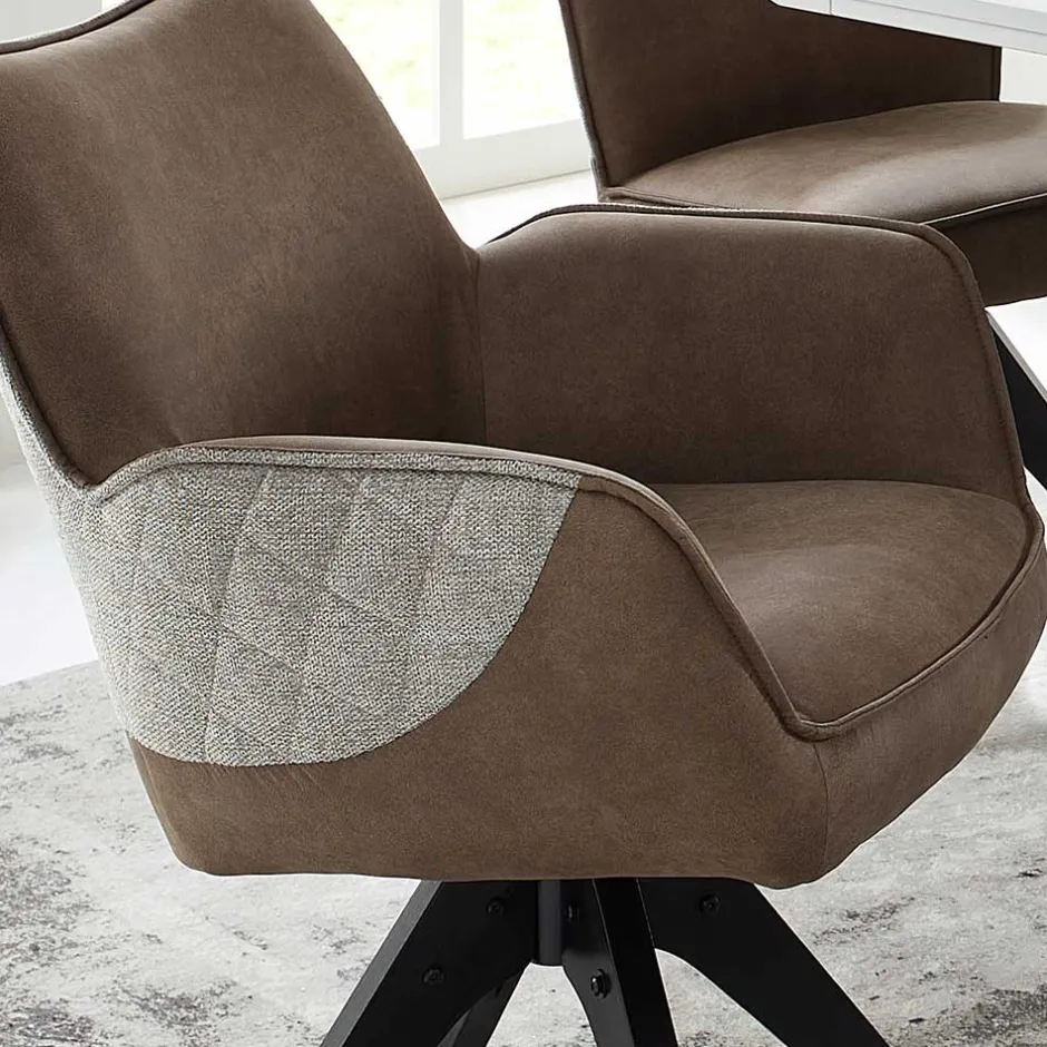 - Bezüge aus brauner Microfaser im Vintage Style (100 % Polyester) und grauem Webstoff (94 % Polyester, 6 % Nylon), aufwändig mit umlaufendem Keder gearbeitet