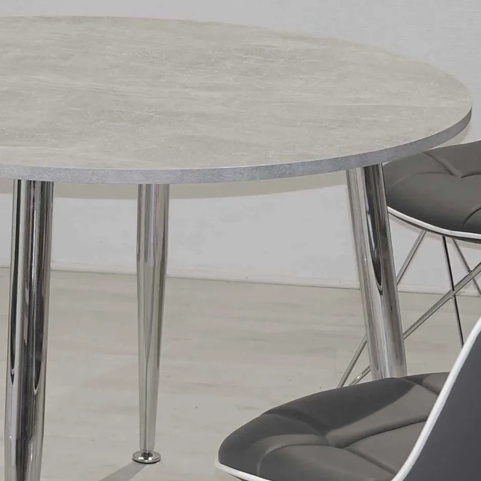 - Kompakte Sitzgruppe in Dunkelgrau, Chrom und Beton Grau