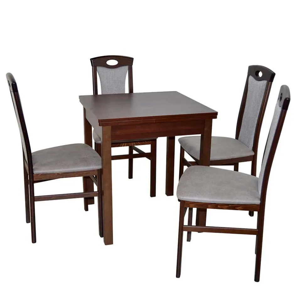- Attraktive Essgruppe in Nussbaumfarben und Hellgrau