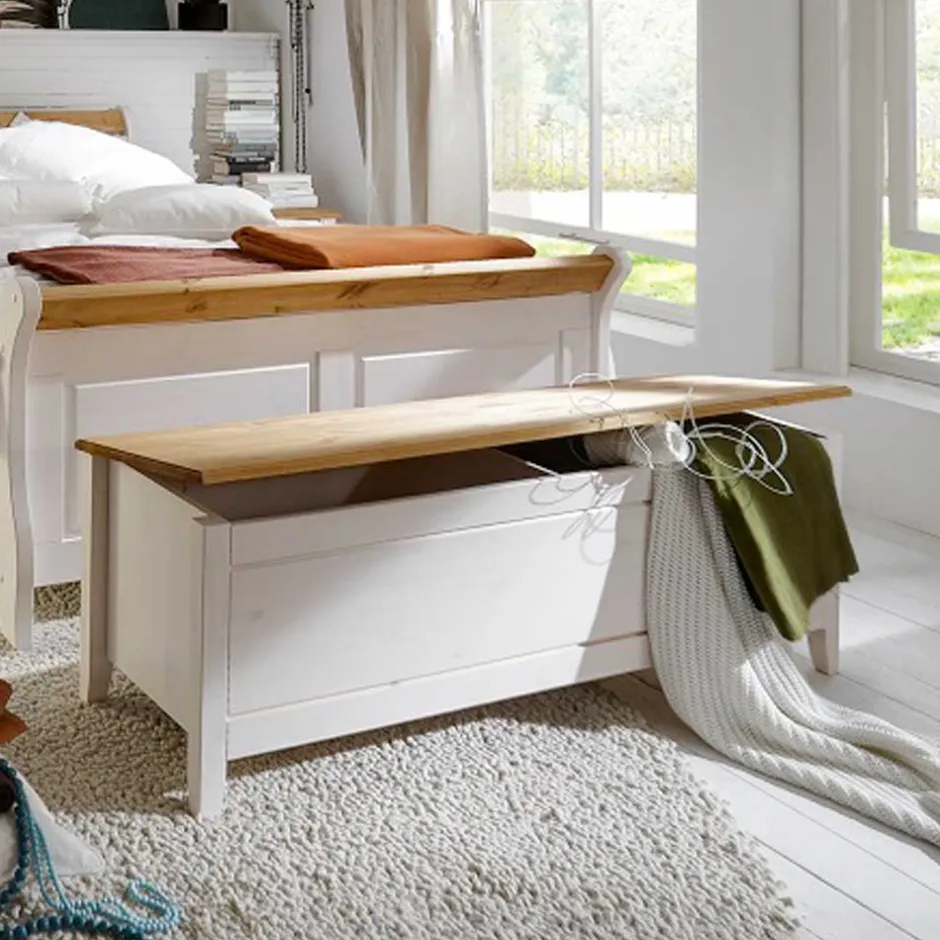 - Schöne Schlafzimmer Truhe in Weiß und Kiefer Laugenfarben