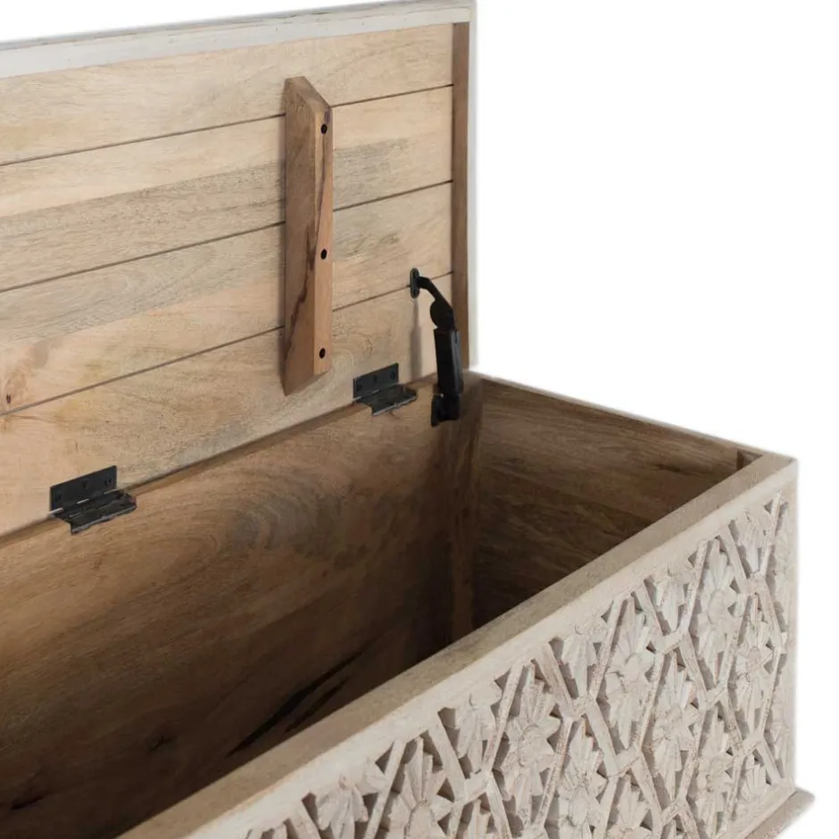 - Flacher Truhendeckel mit stabilen Metallscharnieren