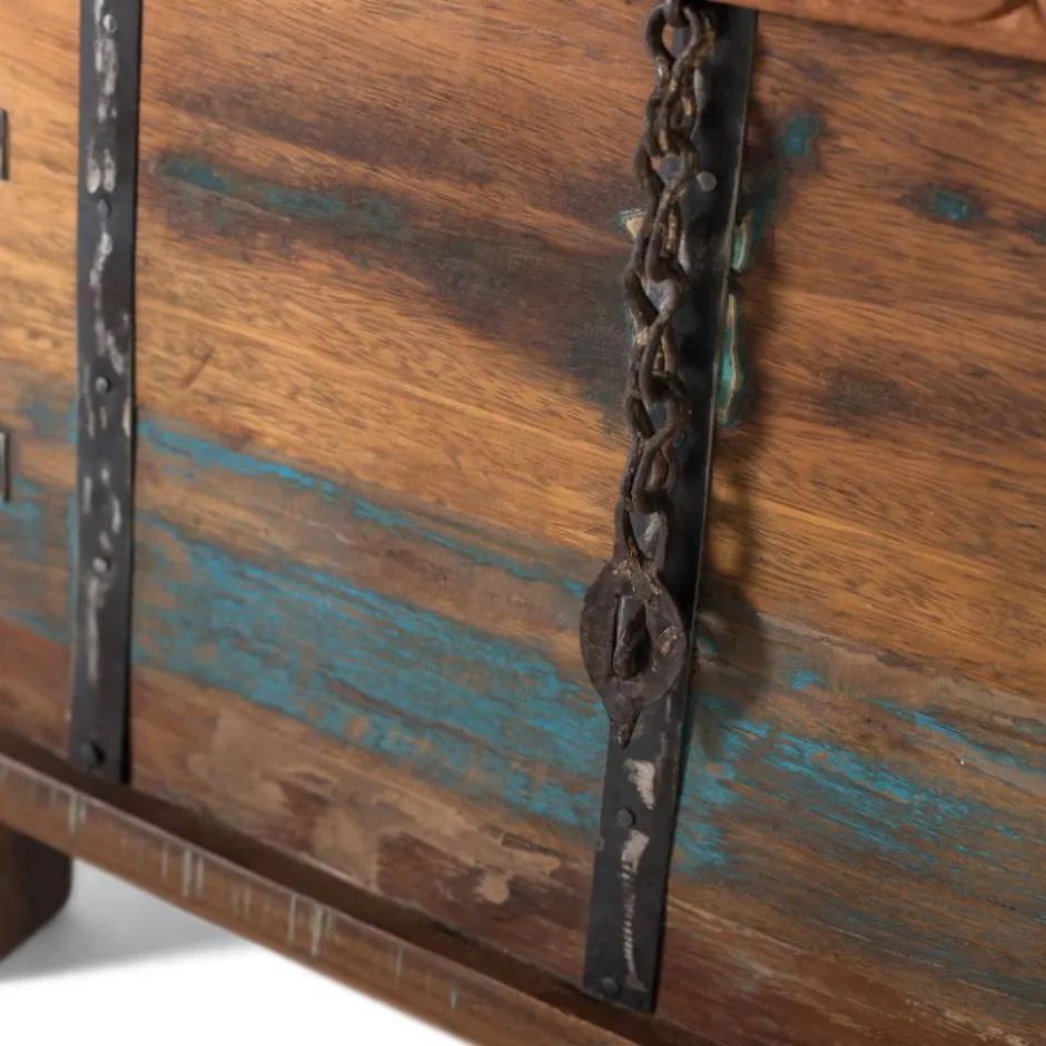 - Kompakte Truhe in Holz Braun und mehrfarbig