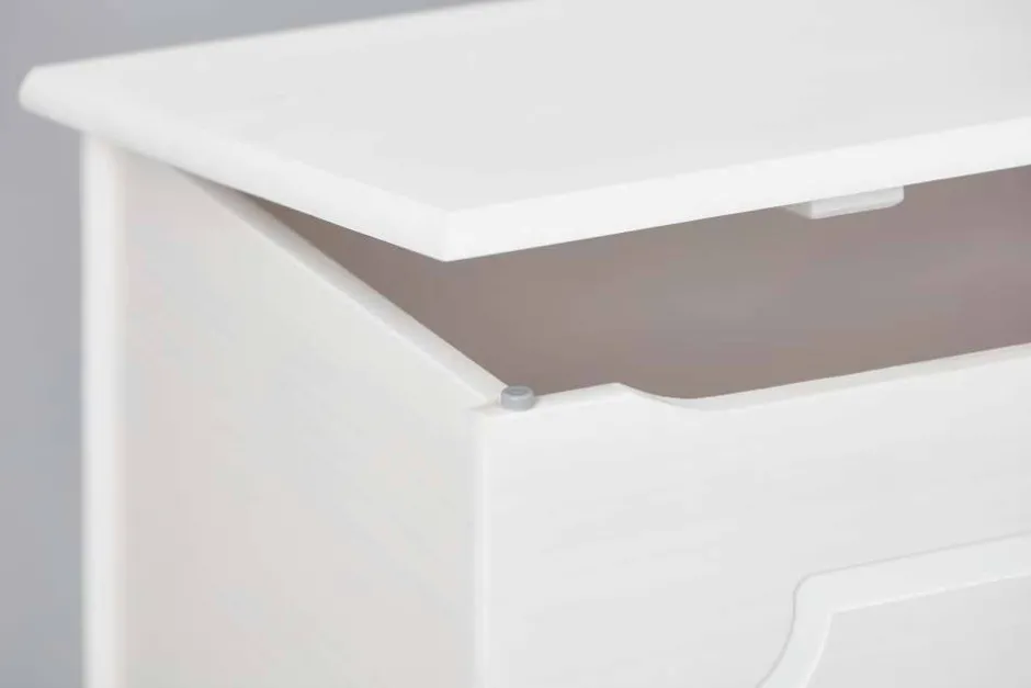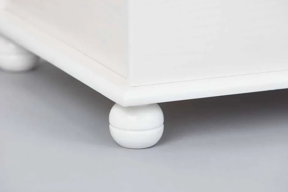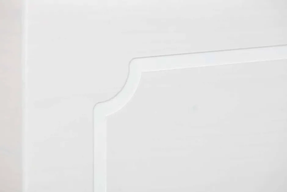 - Weiß lackierte Oberfläche, durchscheinende Holzmaserung, Front dekorativ gefräst