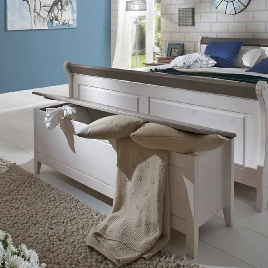 - Praktische Wäschetruhe in Weiß und Kiefer Grau