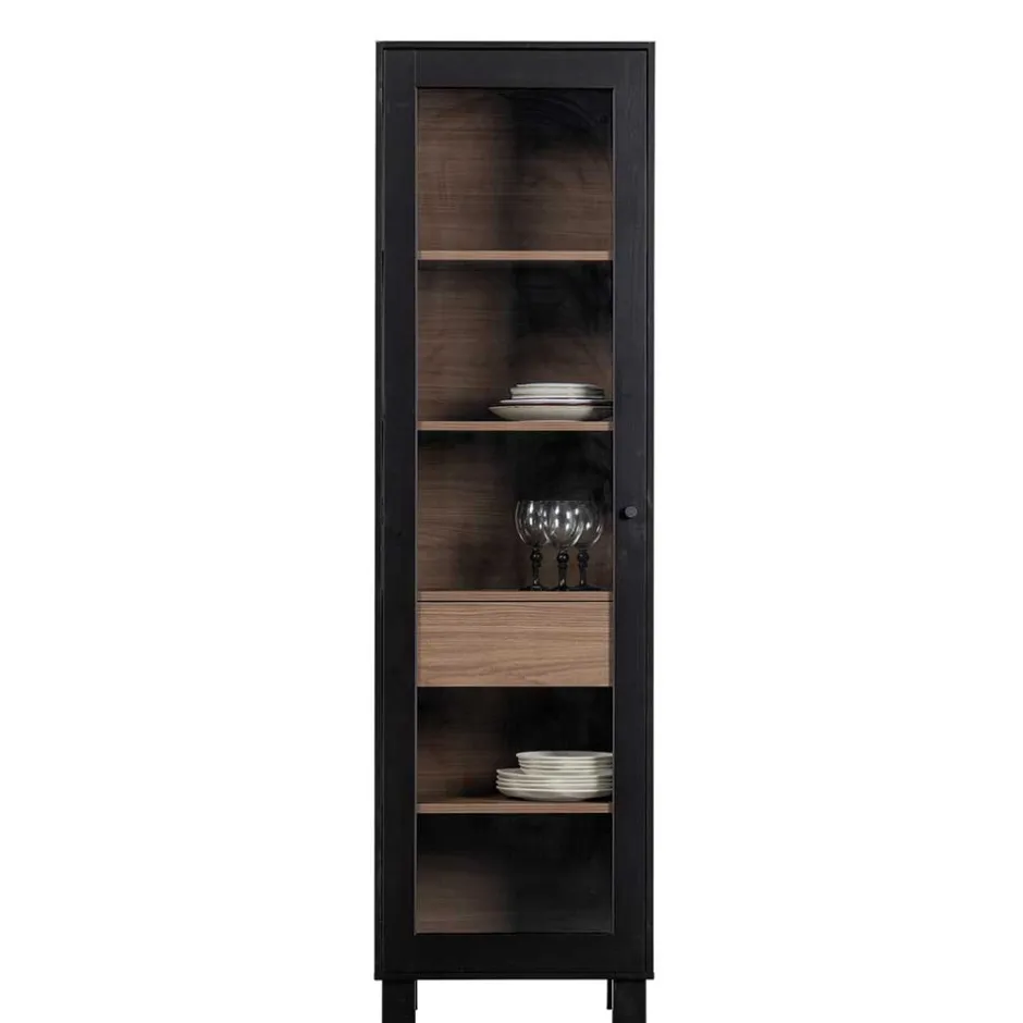 - Topaktuelle Vitrine in Schwarz und Walnussbraun