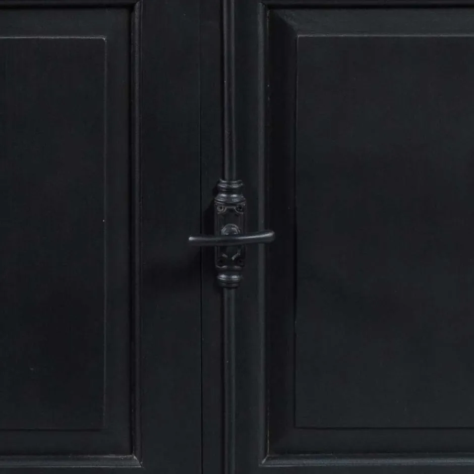 - Zwei Glastüren mit Holzsprossen, innen drei Glasböden