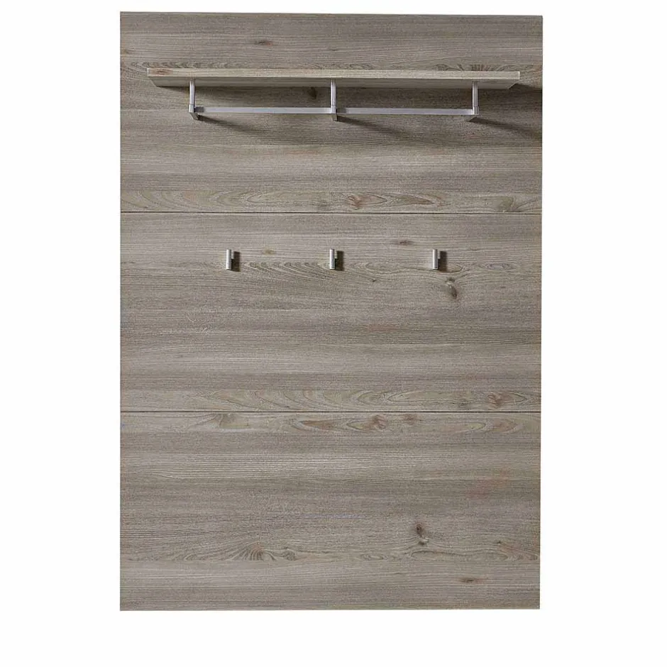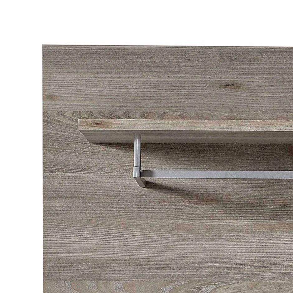 - Eine praktische Hutablage, darunter eine Kleiderstange aus Metall in Silber matt