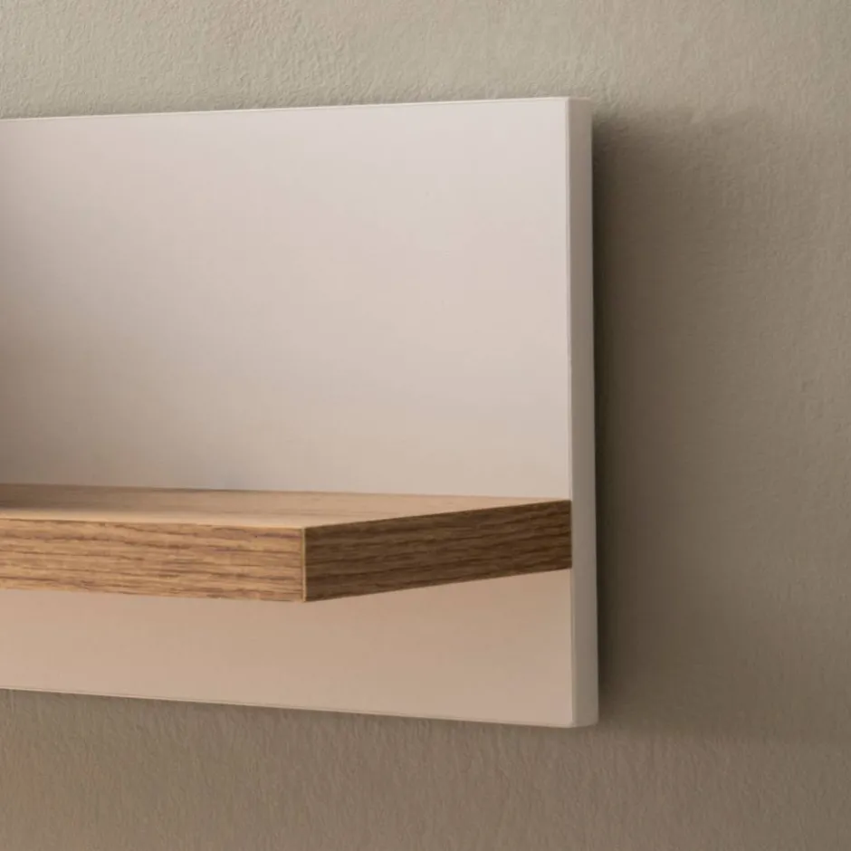 - Eine Ablage in Eichefarben, Rückwand weiß