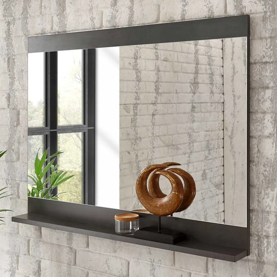 - Pflegeleichte Spiegelfläche, melaminbeschichteter Rahmen in Dunkelgrau