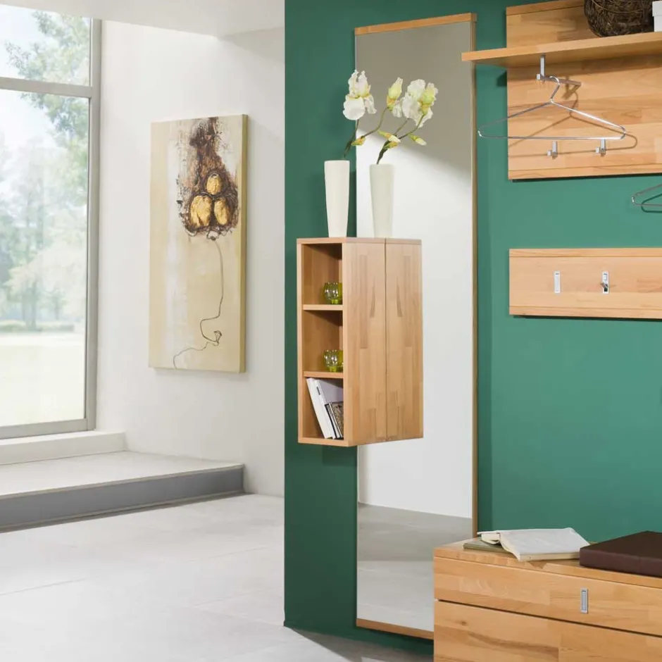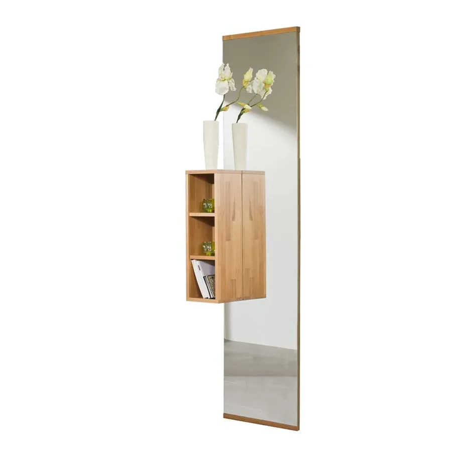 - Exclusiver Garderobenspiegel mit Regalelement in Kernbuche