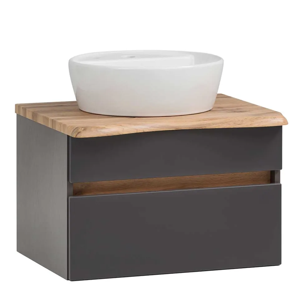 - Trendstarker Waschtisch mit Baumkante in Dunkelgrau und Wildeichefarben