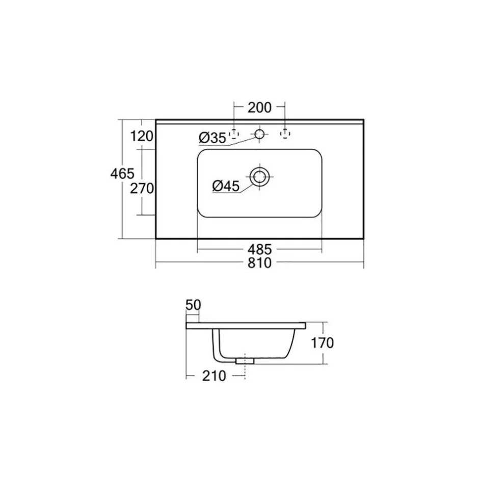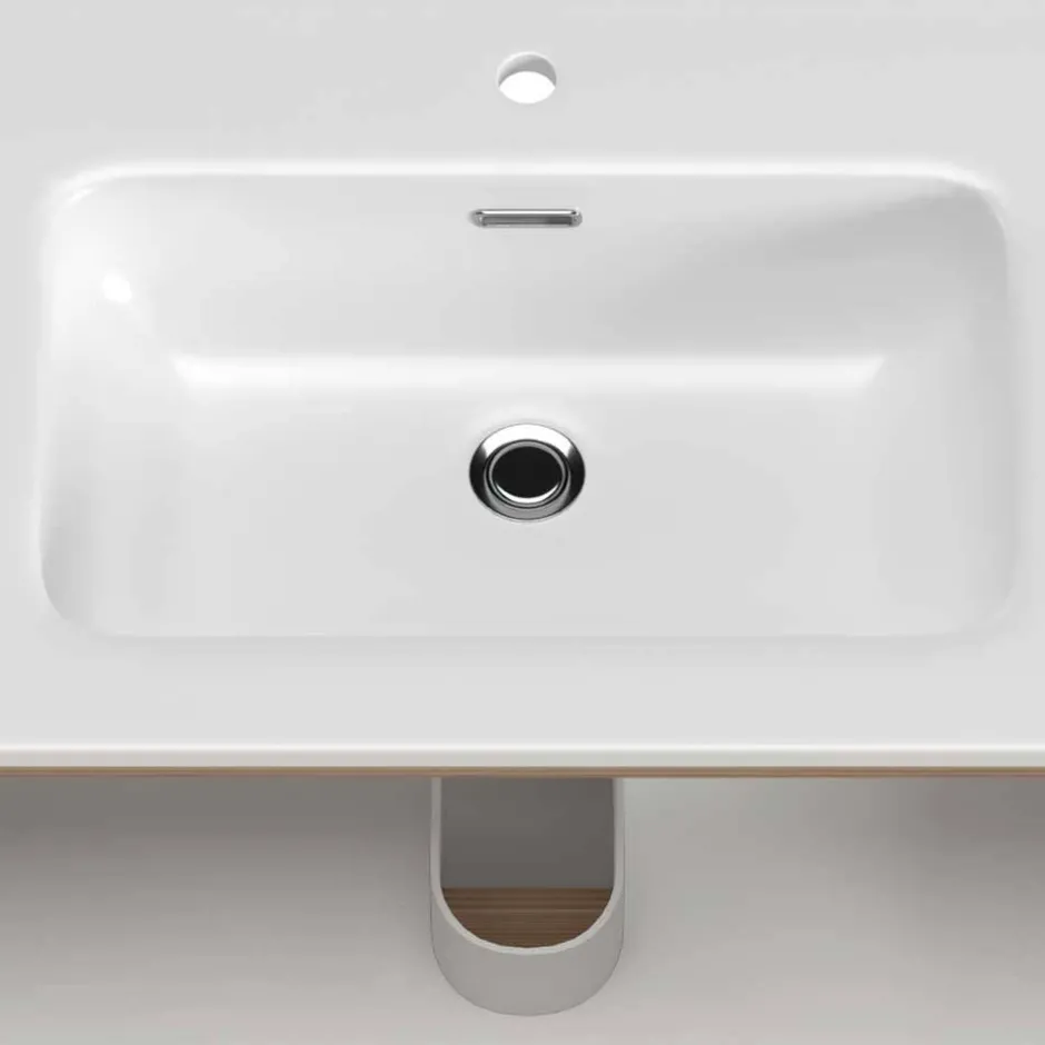 - Weißes Einlass-Waschbecken aus Keramik, Maße: BxHxT: 81x17x46,5 cm