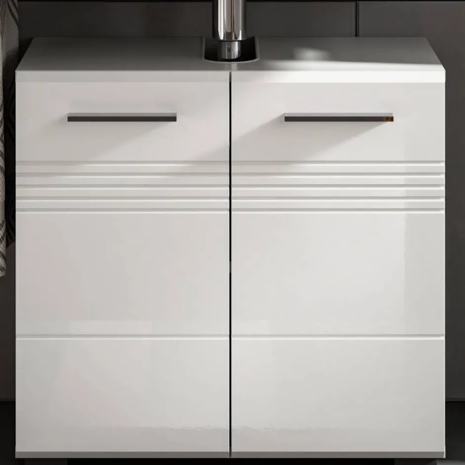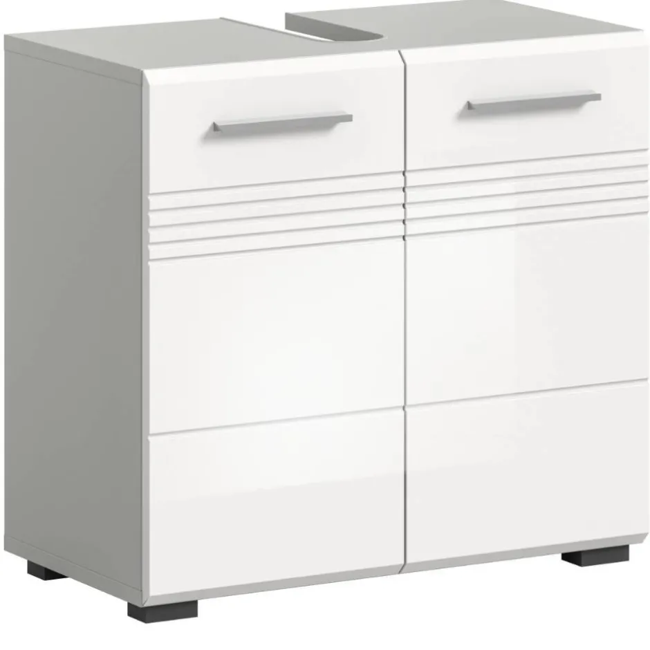 - Praktischer Waschbeckenschrank in Weiß und Hellgrau