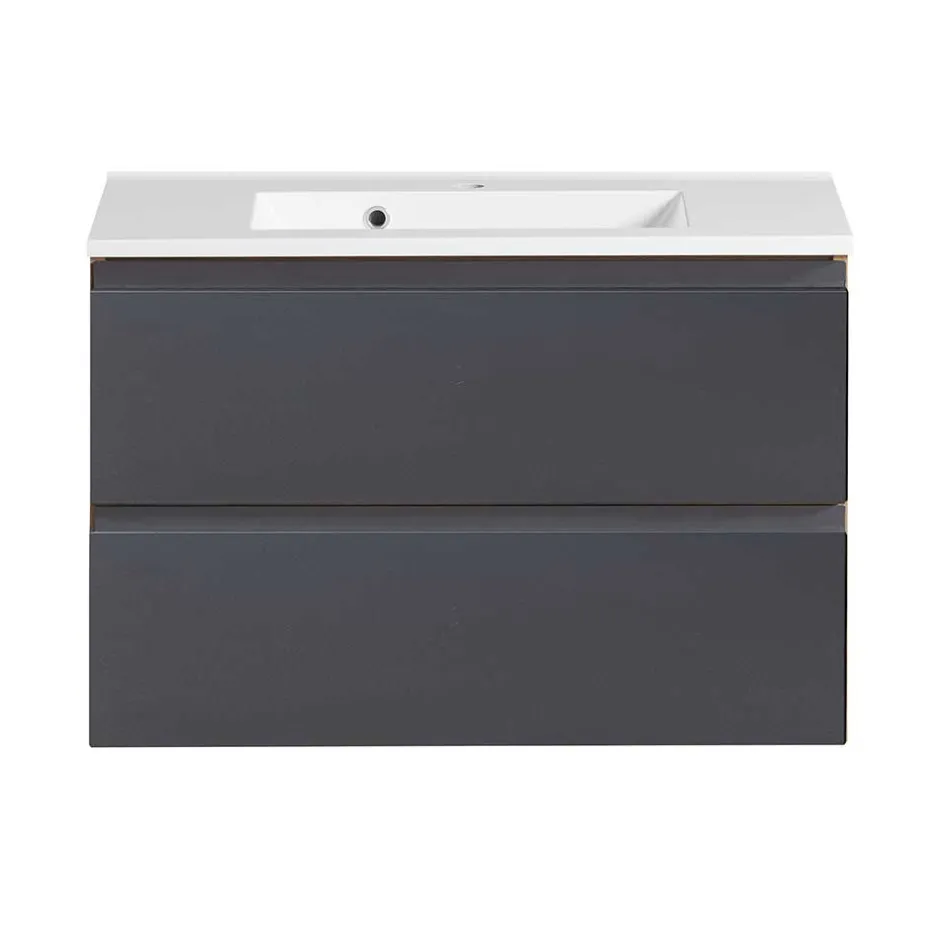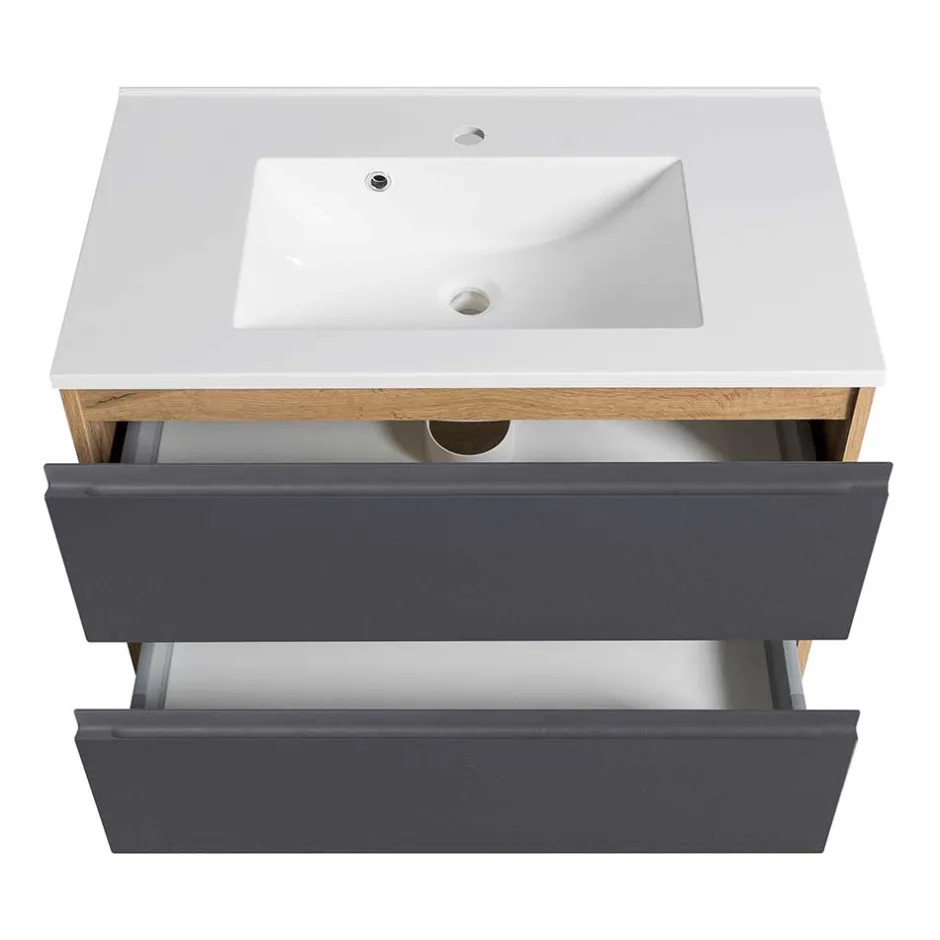 - Geradliniger Waschtisch in Dunkelgrau und Wildeichefarben