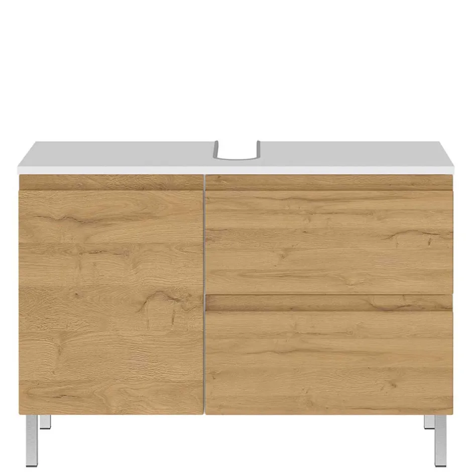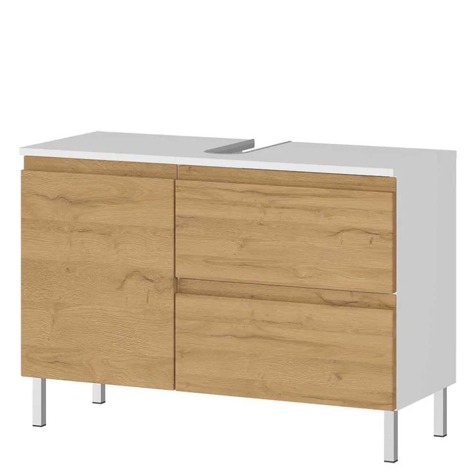 - Topaktueller Waschbecken-Unterschrank in Wildeichefarben und Weiß