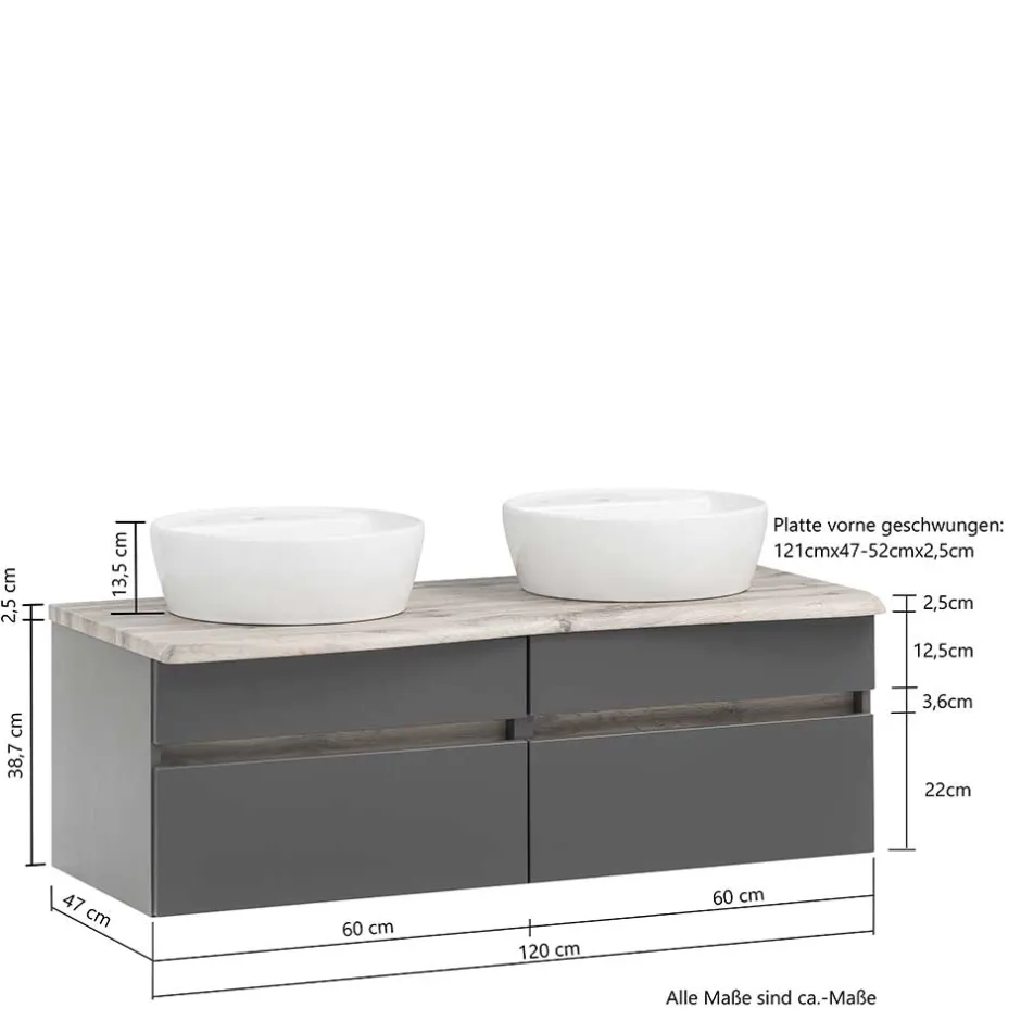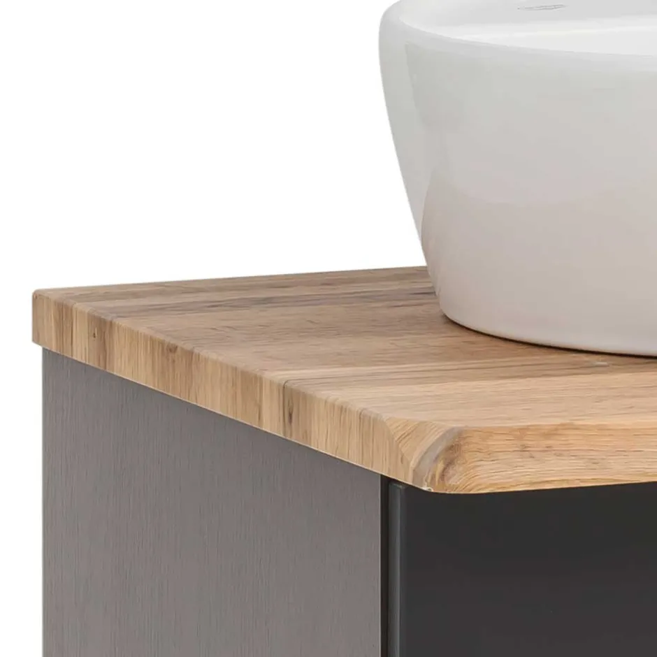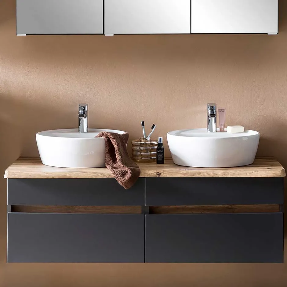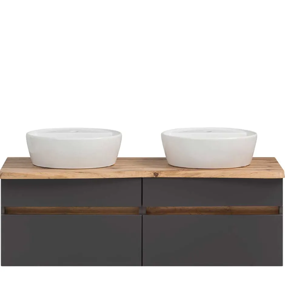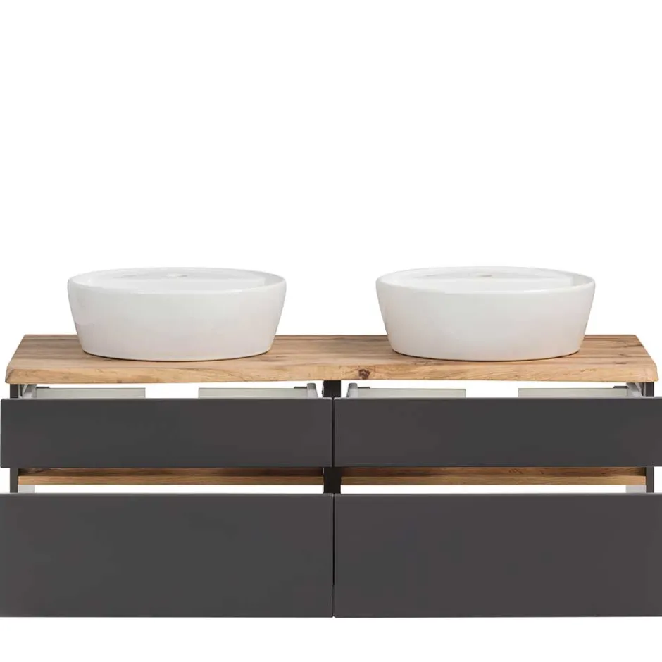 - Attraktiver Doppel-Waschtisch mit Baumkante in Wildeichefarben und Dunkelgrau