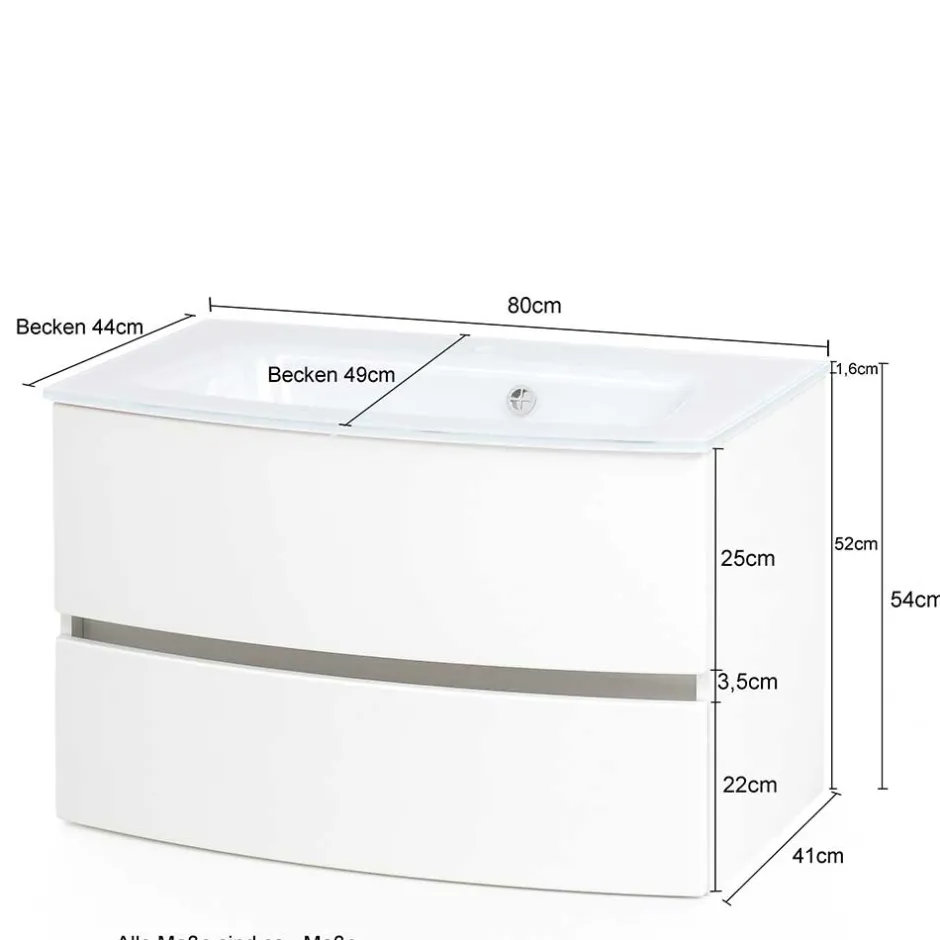 - Gebogenes Glasbecken in Weiß, Innenmaße: BxHxT: 65x10x30,5 cm