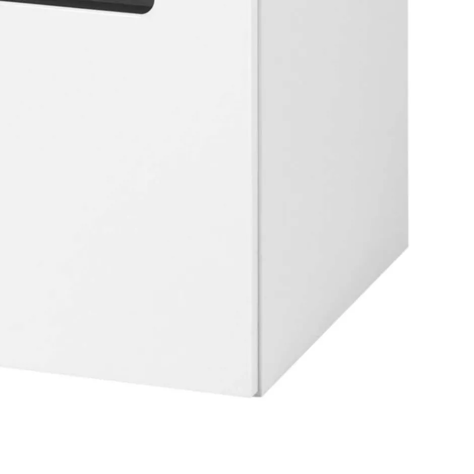 - Weißer Waschbeckenschrank mit anthrazitfarbigen Griffmulden