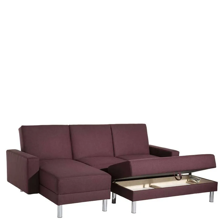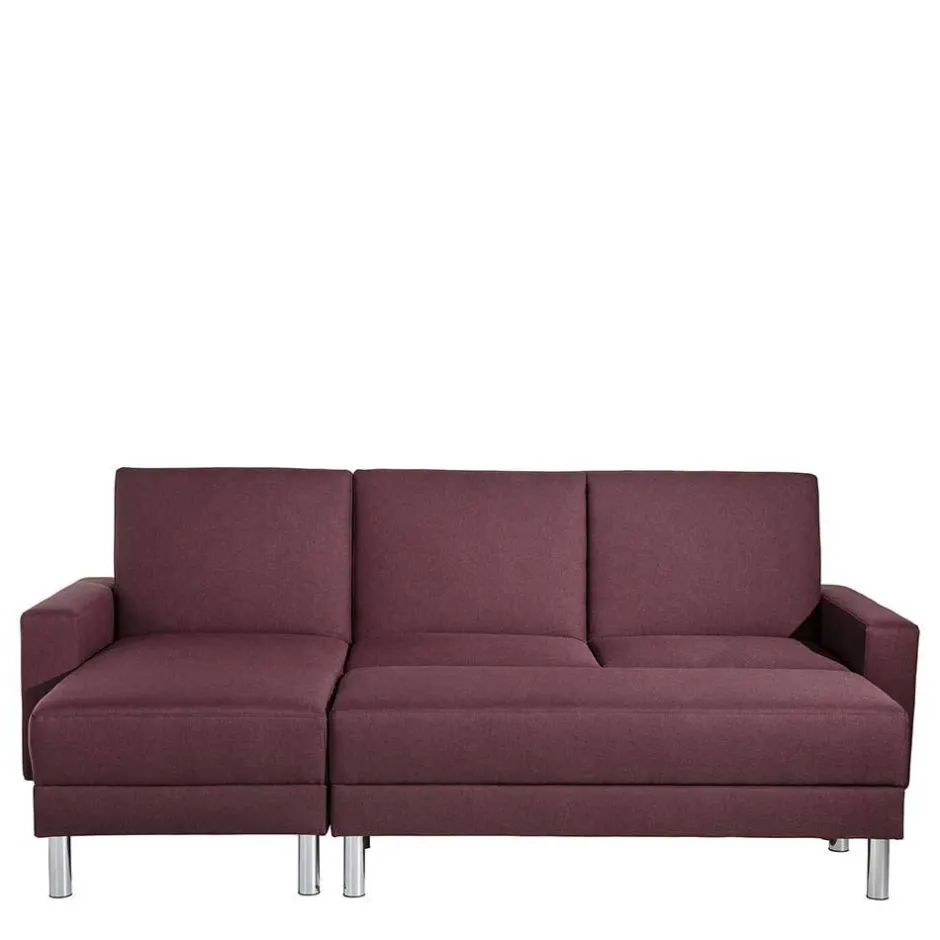 - Elegantes Funktionssofa in Bordeauxrot und Chromfarben
