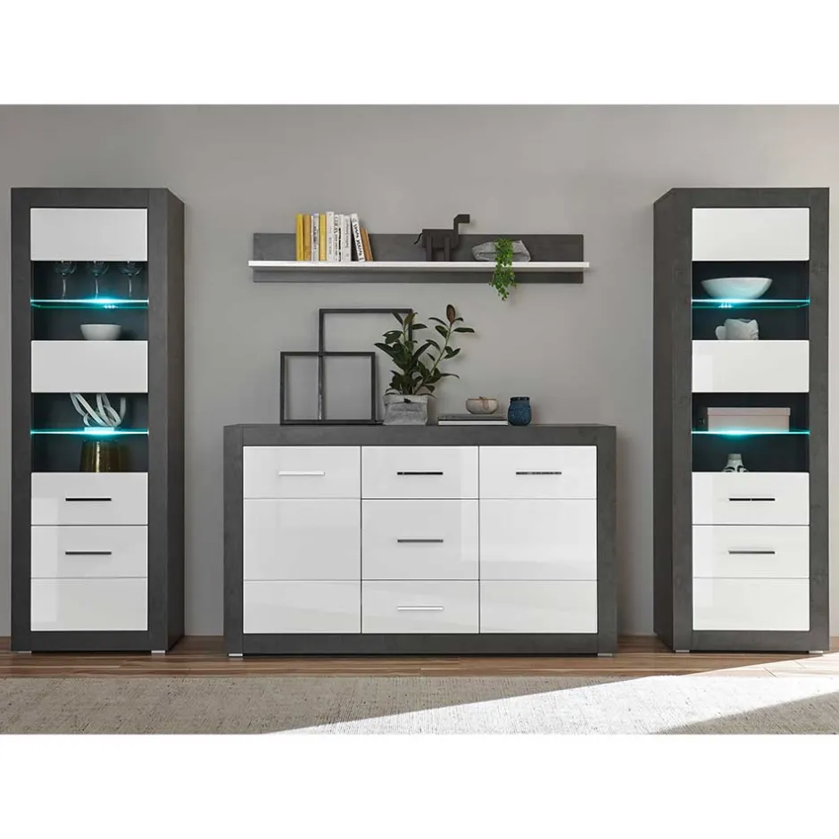 - Zeitlose Wohnwand in Beton Grau und Weiß