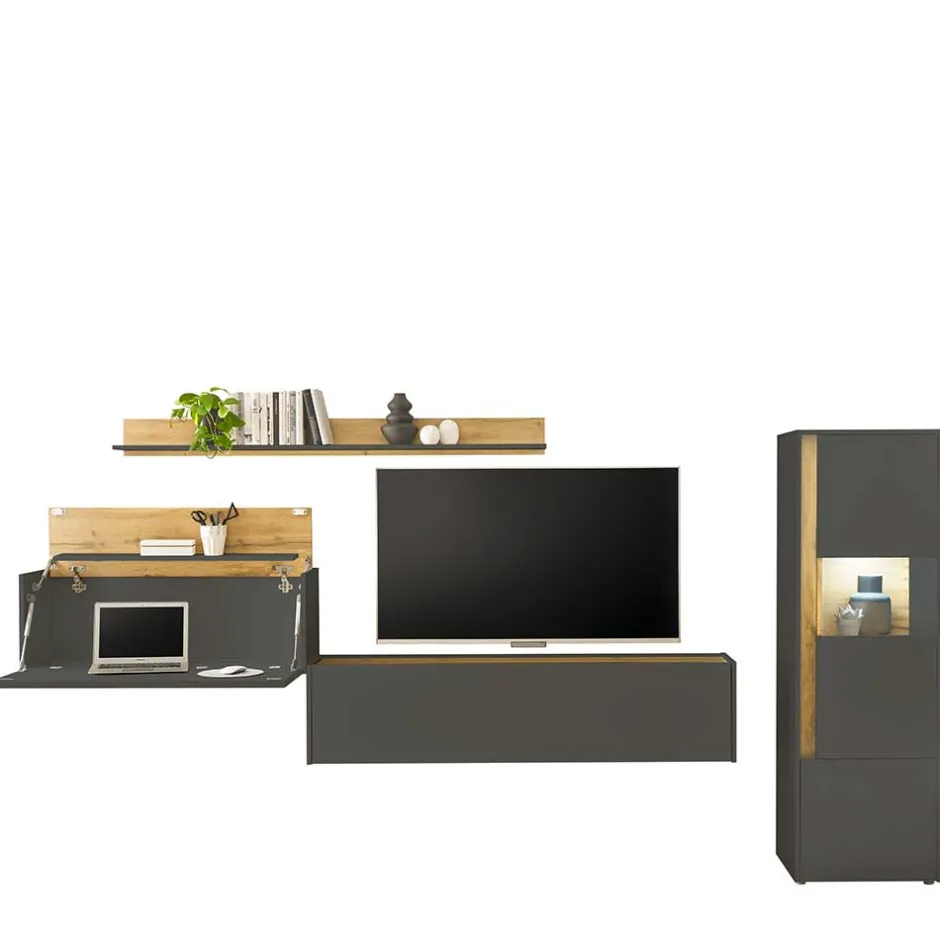 - Elegante Wohnwand in Anthrazit und Wildeichefarben