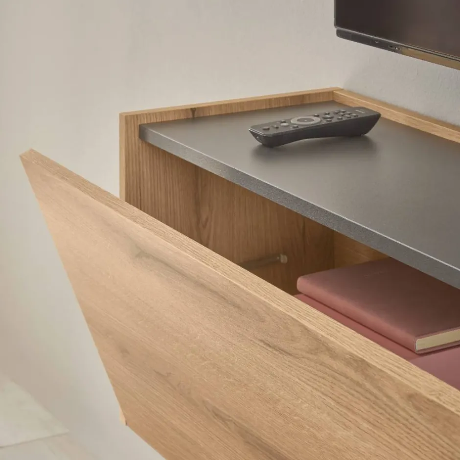- Ansprechende Wohnwand in Wildeichefarben und Anthrazit