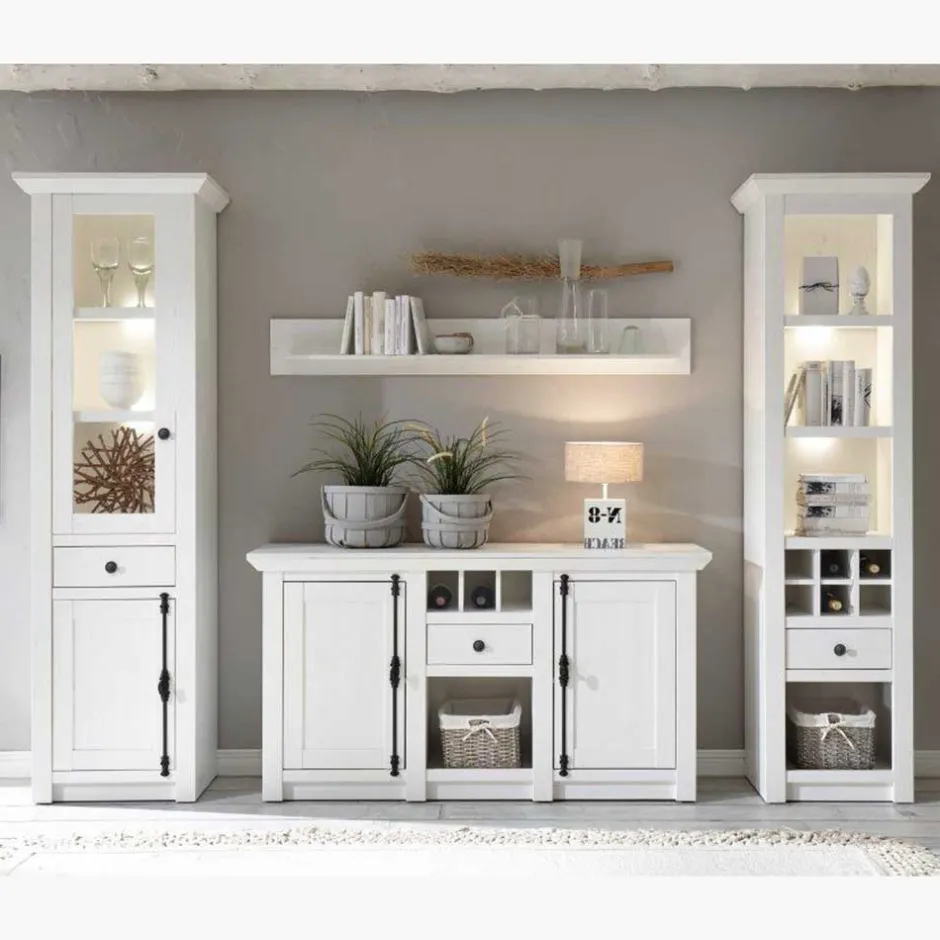 - Hochwertige Landhaus Wohnwand in Pinie Weiß