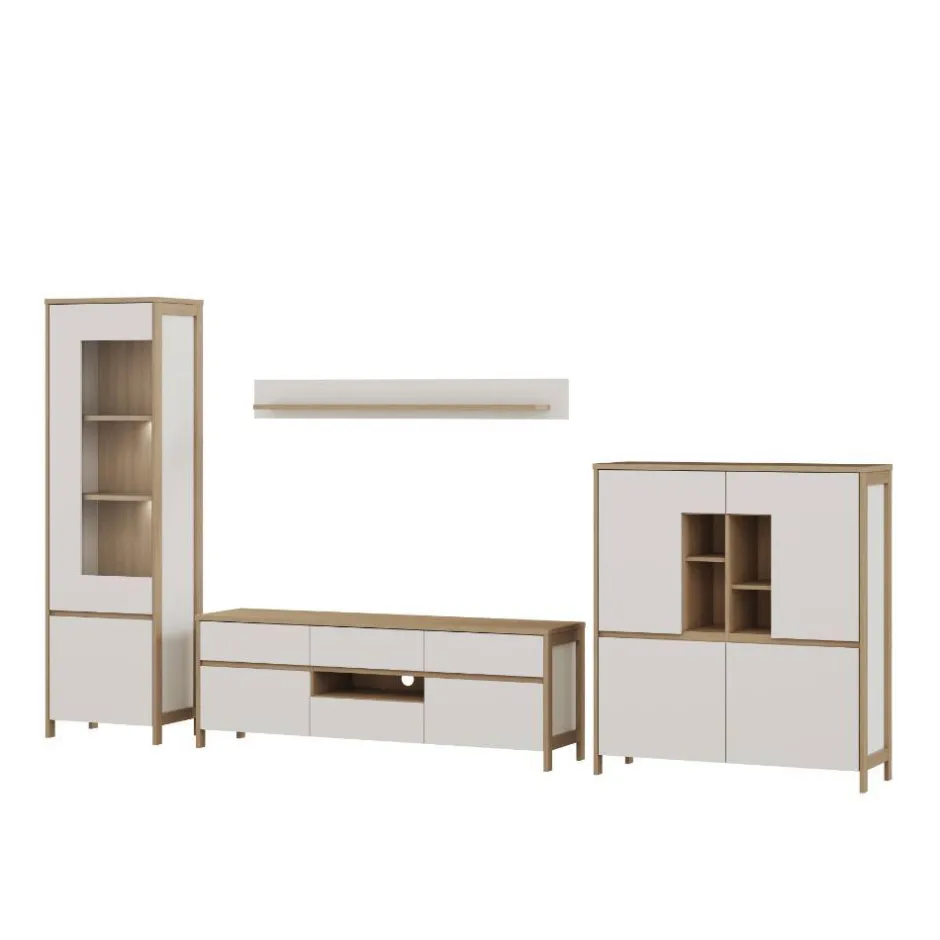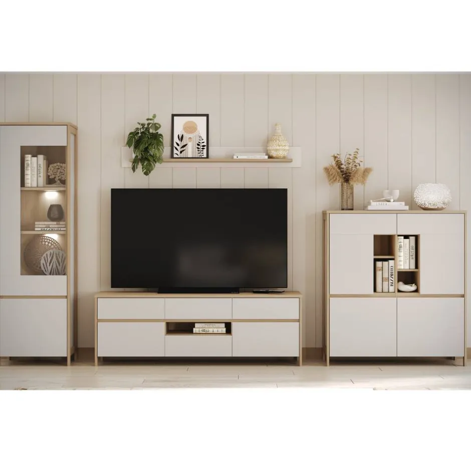 - Super Wohnwand in Weiß und Eichefarben
