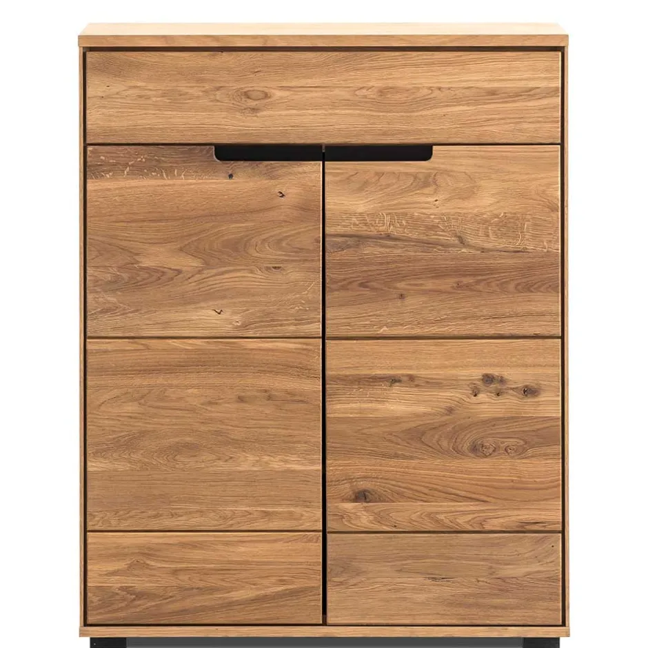 - Front aus massivem Eichenholz (durchgehende Lamelle), Korpus aus Holzwerkstoff gefertigt