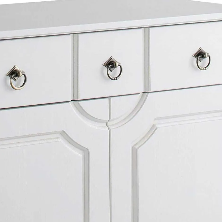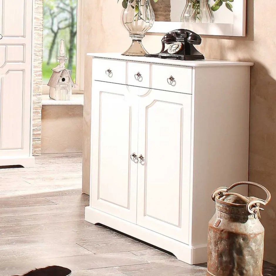 - Eine Schublade mit Metallauszug, wirkt optisch wie drei