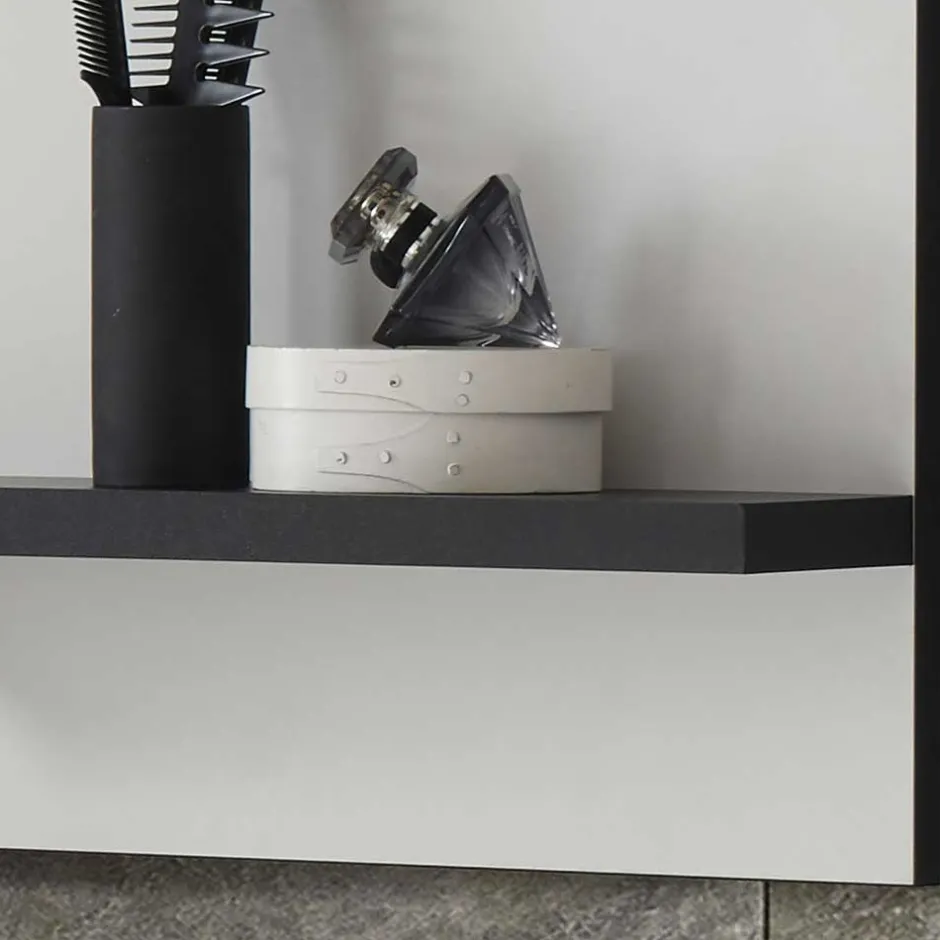- Zwei stabile Ablagen in Schwarz, ideal für griffbereite Kosmetikartikel