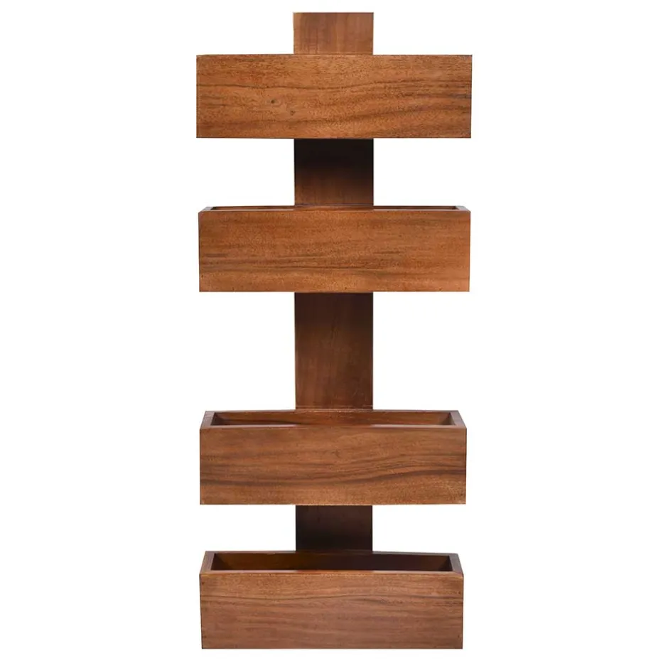 - Unterer und dritter Kasten mit Böden, die beiden anderen sind unten offen und dienen als Halterung für die Zeitschriften