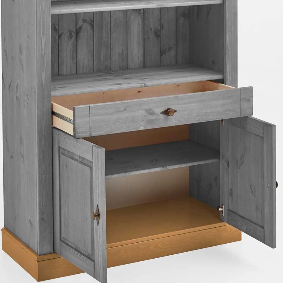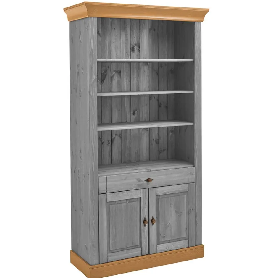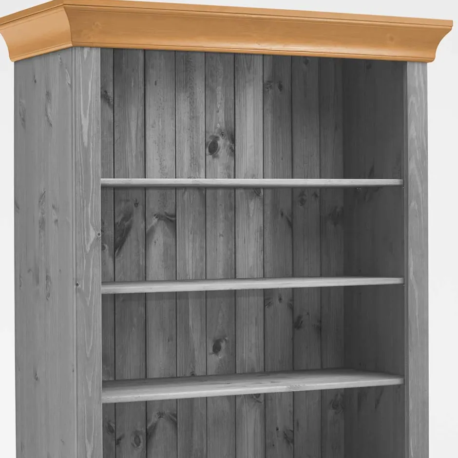 - Trendstarkes Wohnzimmerregal in Grau und Kiefer Laugenfarben