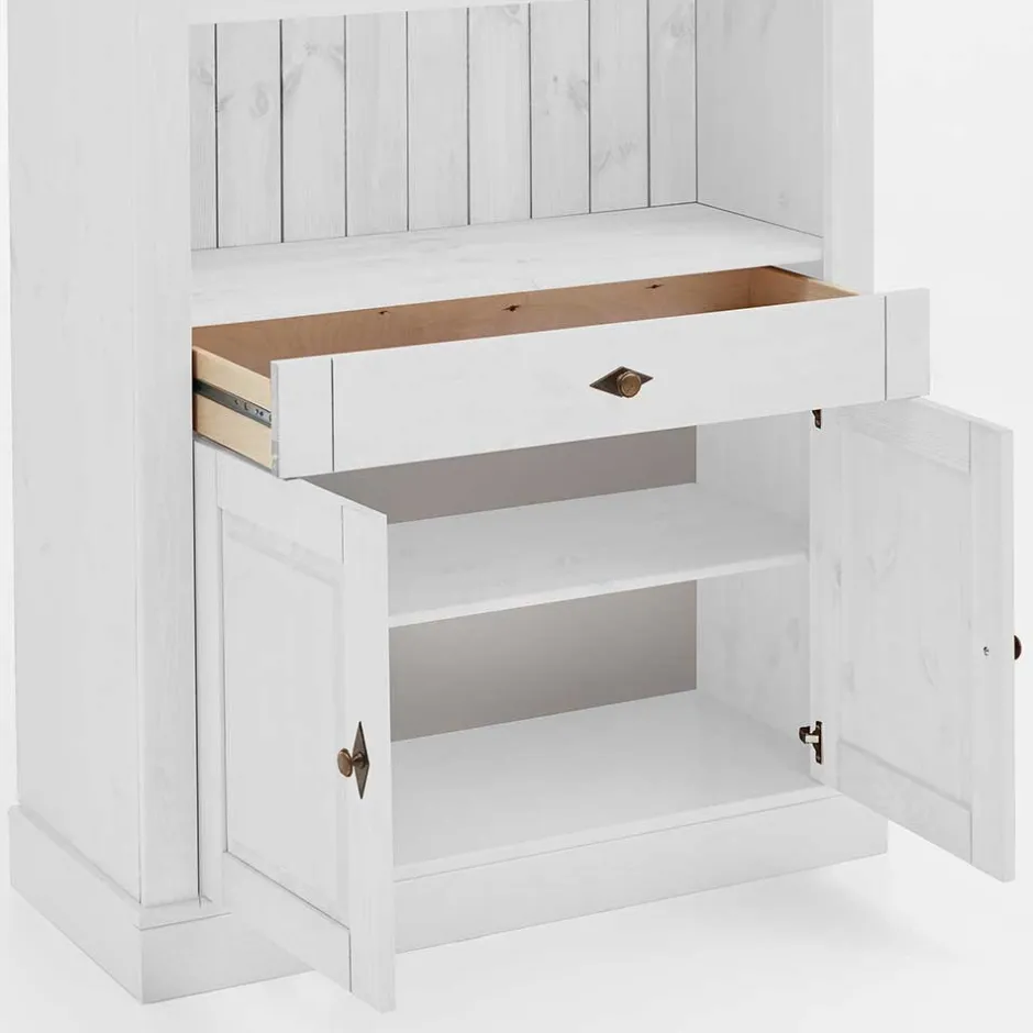 - Oberfläche in Weiß lackiert, durchscheinende Holzmaserung