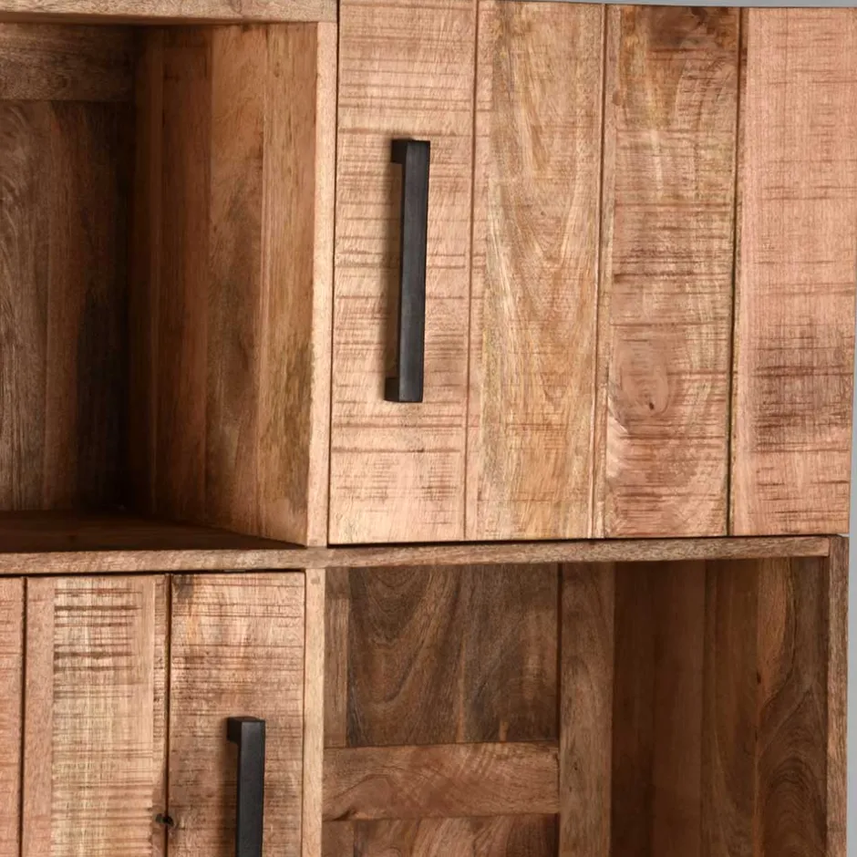 - Rustikales Regal in Mangoholz Naturfarben und Schwarz