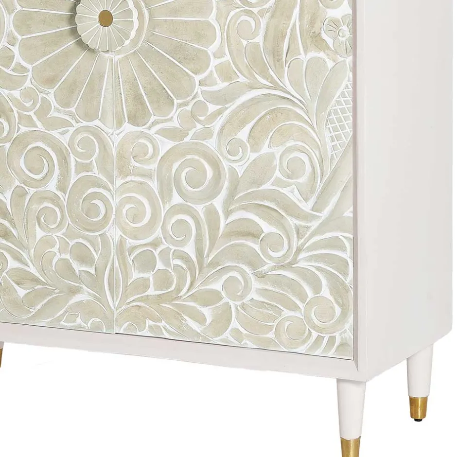 - Elegantes Highboard in Weiß-Cremeweiß und Goldfarben