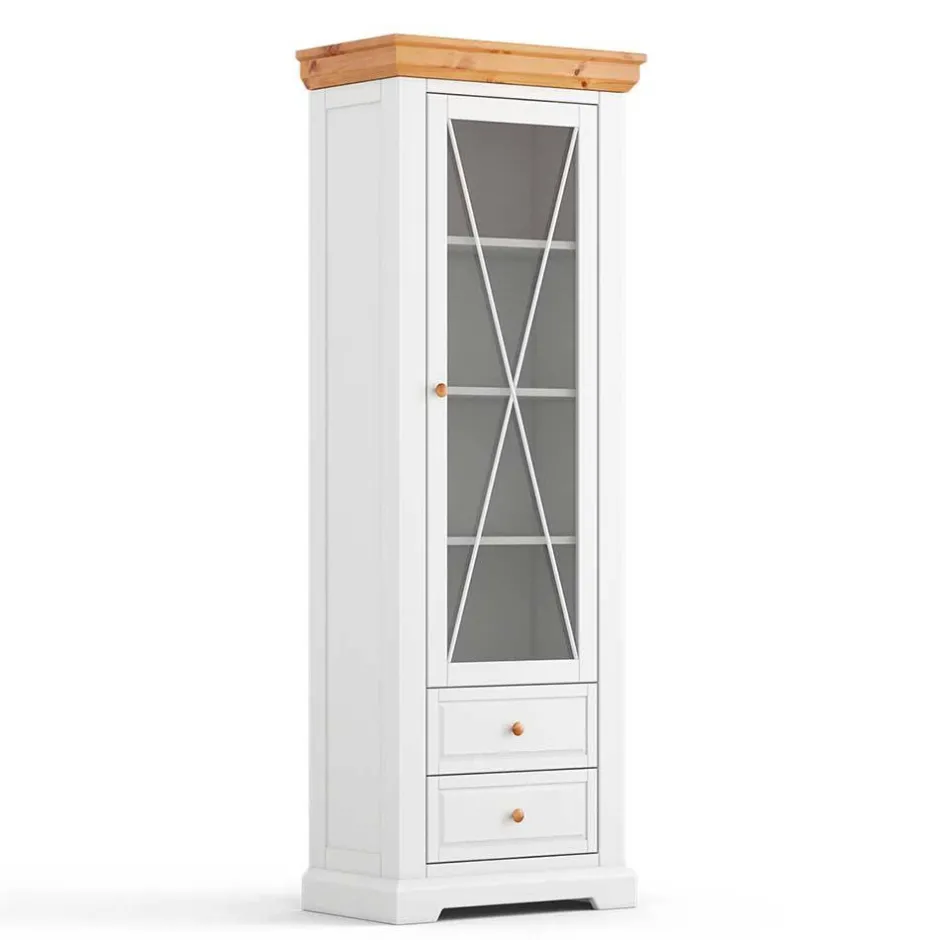 - Klasse Vitrine in Weiß und Kieferfarben