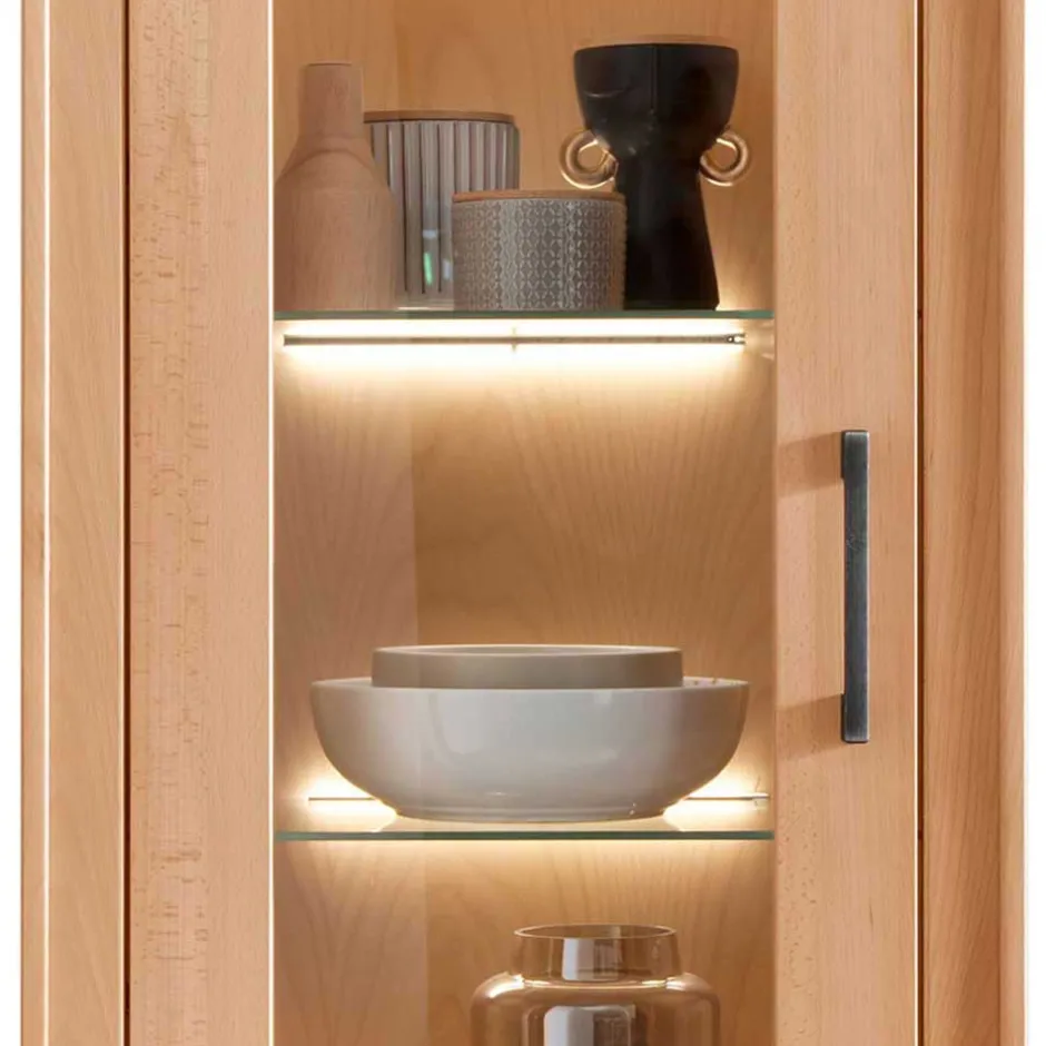 - In der Variante mit variabler LED-Beleuchtung von Glasboden oder Rückwand lieferbar (Vitrine/Highboard)