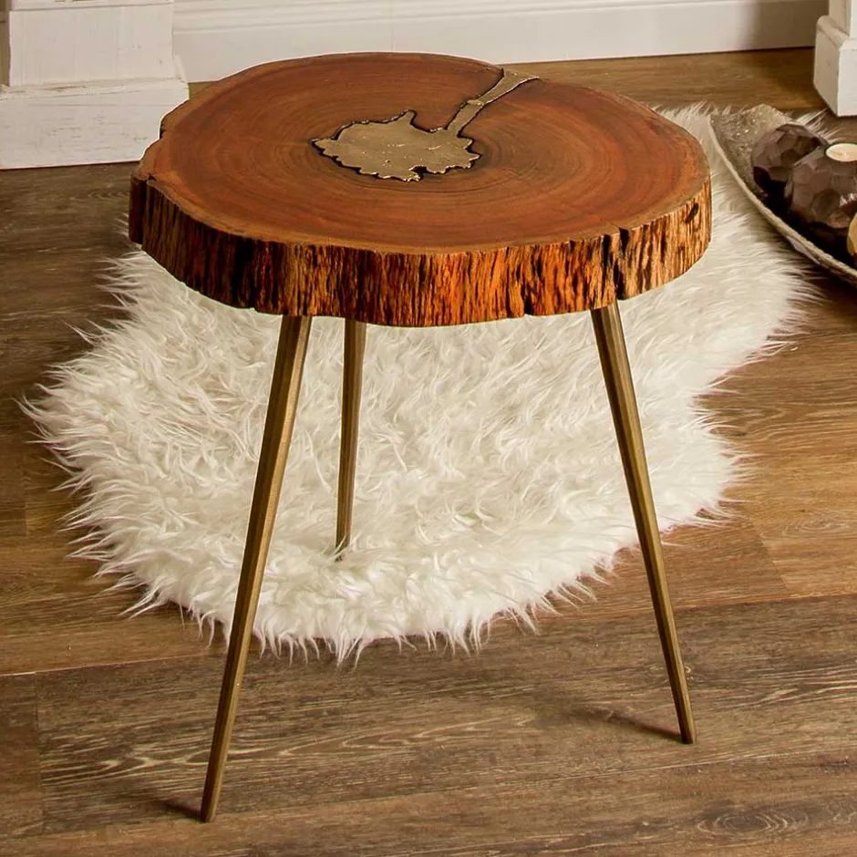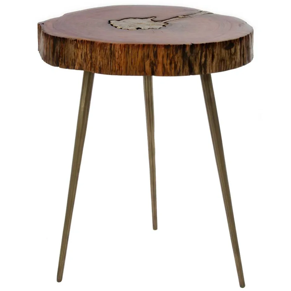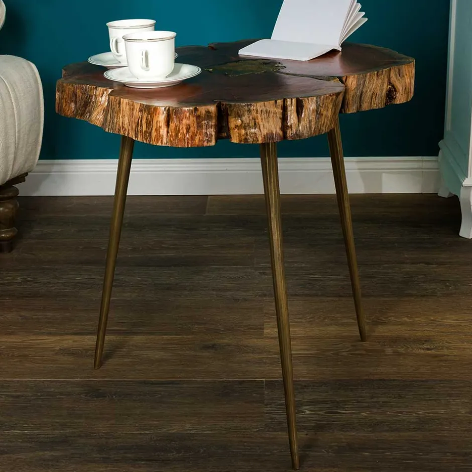 - Raffinierter Beistelltisch in Holz Braun und Messingfarben