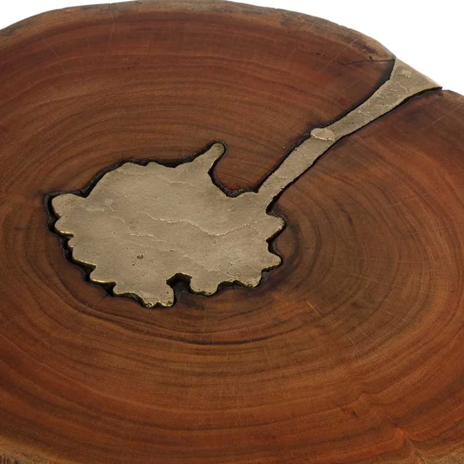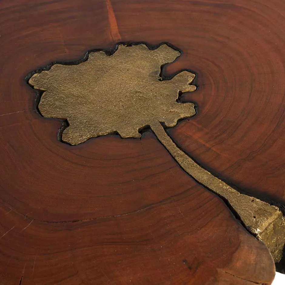 - In die Tischplatte eingelassen ein Baum aus Messing