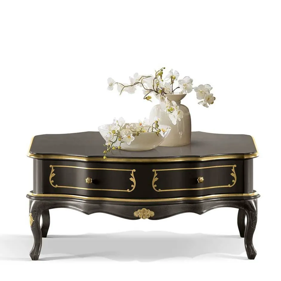 - Elegant präsentiert sich der Tisch in den Farben Gold und Dunkelbraun