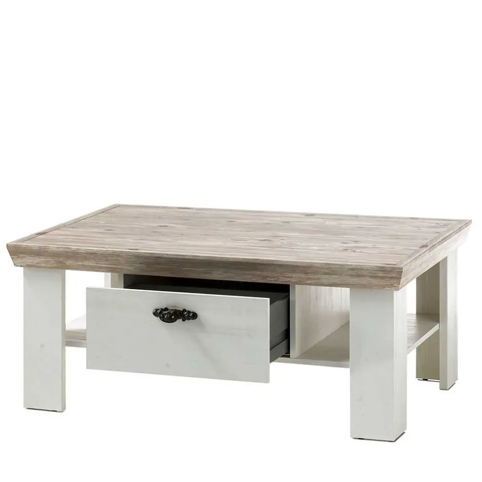 - Adretter Couchtisch in Weiß und Pinie verwittert