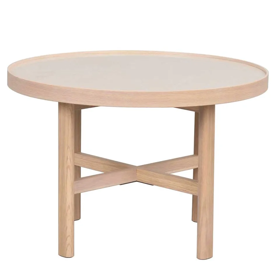 - Trendstarker Couchtisch in Beige und Eiche White Wash