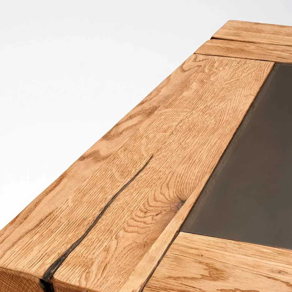 - Holzoberfläche rissig und knotig, natürlich geölt
