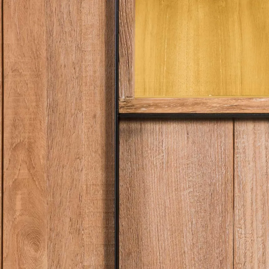 - Holzwerkstoff furniert mit Teakholz, rustikal strukturierte Oberfläche, mit Antik-Finish behandelt